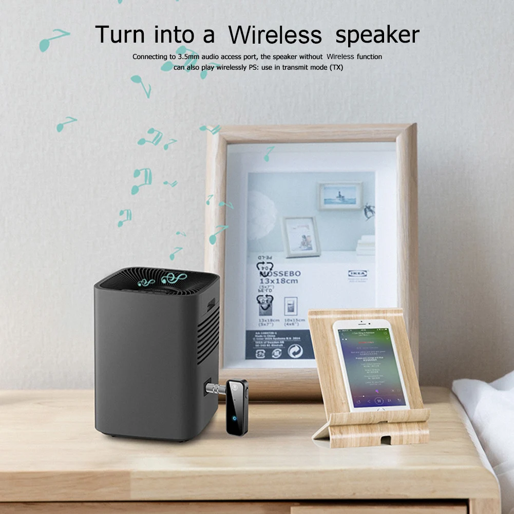 4. Wireless Playback: Speakers that do not have Bluetooth capability can be played wirelessly by connecting them to the 3.5mm audio port. Link the bluetooth connector to your car’s AUX port via the wireless adapter and then connect Bluetooth to your car stereo. You can not only make calls but also listen to great music, so you are never alone on your journey.