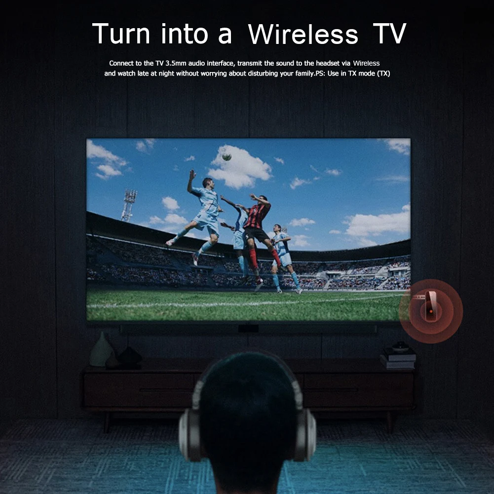 3. Sound Transmission: Connect this Bluetooth-Compatible 5.0 Receiver to your TV’s 3.5 mm audio jack and transmit the sound to your headphones via Bluetooth. So you don’t have to worry about disturbing your family while watching a film at night.